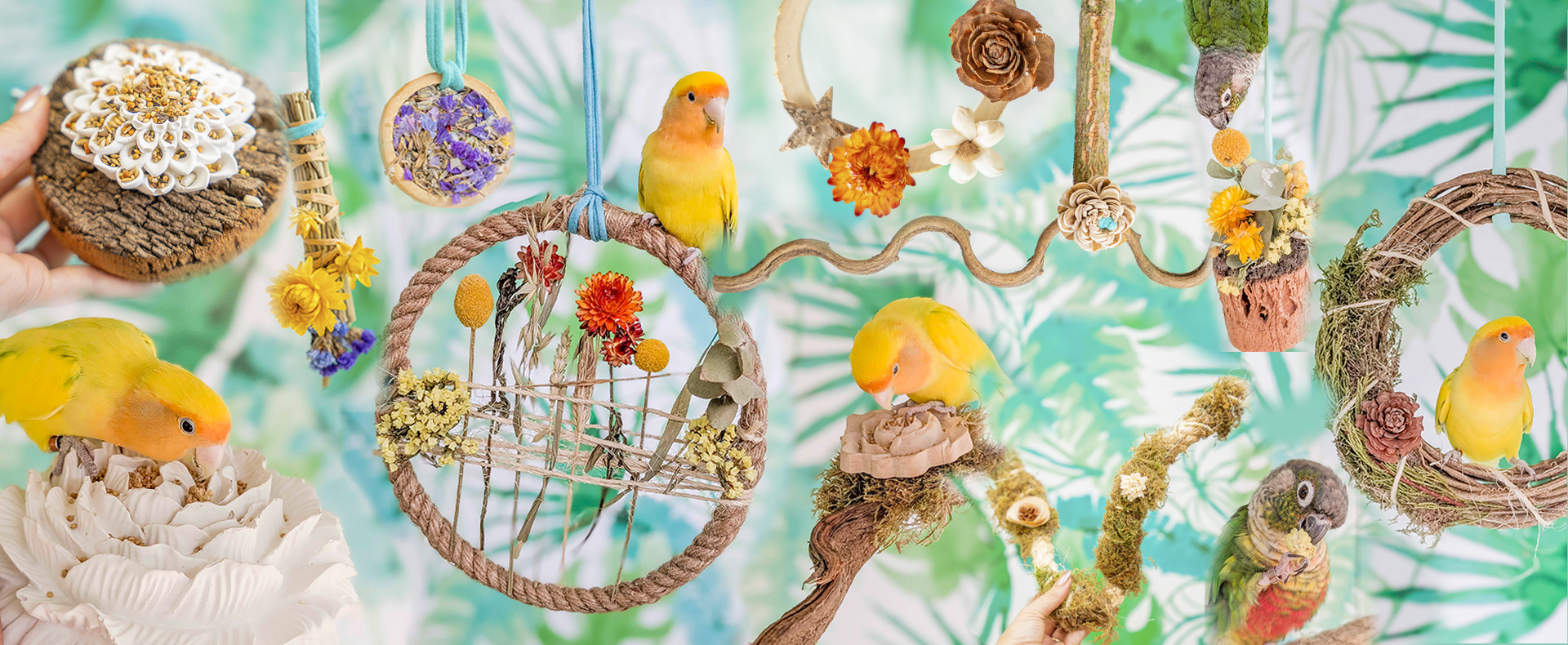 La unión de dos grandes pasiones, el diseño y nuestros loros. Productos de todas las categorias que fomentan sus conductas naturales.